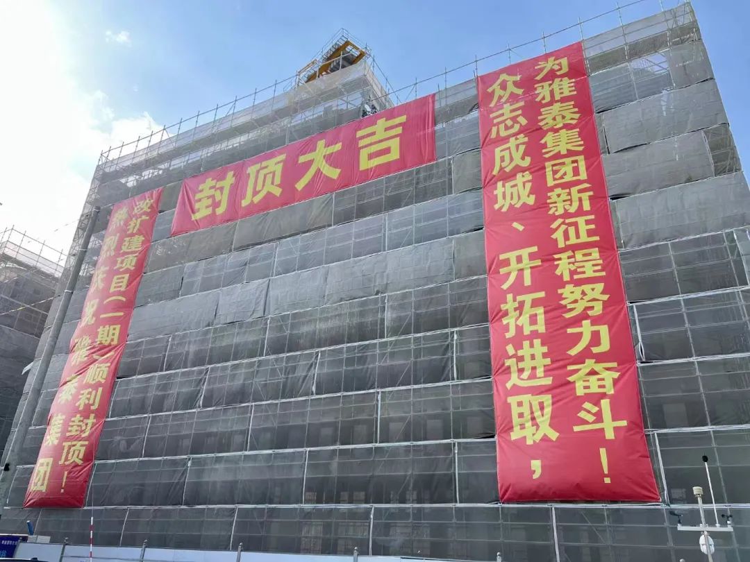 2022年12月18日,雅泰迎來(lái)23周歲生日之際,聯(lián)東U谷·雅泰國(guó)際企業(yè)港項(xiàng)目成功完成主體封頂,集團(tuán)大樓上掛滿(mǎn)了慶賀的條幅,項(xiàng)目相關(guān)領(lǐng)導(dǎo)、單位共襄盛舉。